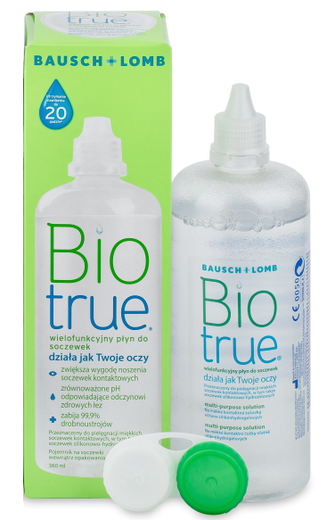 Biotrue to wielofunkcyjny płyn do kompleksowej pielęgnacji miękkich soczewek kontaktowych w tym także soczewek silikonowo-hydrożelowych.